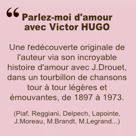 Tous les concerts-spectacles sont construits sur un fil conducteur thématique ou historique, pour mettre en lumière et en musique une époque, un personnage célèbre, un phénomène de société etc. au travers d’airs familiers et mélodies oubliées. De la face cachée des Yéyés à l’histoire des vacances, en passant par la vie amoureuse Victor Hugo et bien d’autres, vous verrez que la vie des chansons est pleine de surprises, et qu’elles portent en elles toute l’histoire du monde !